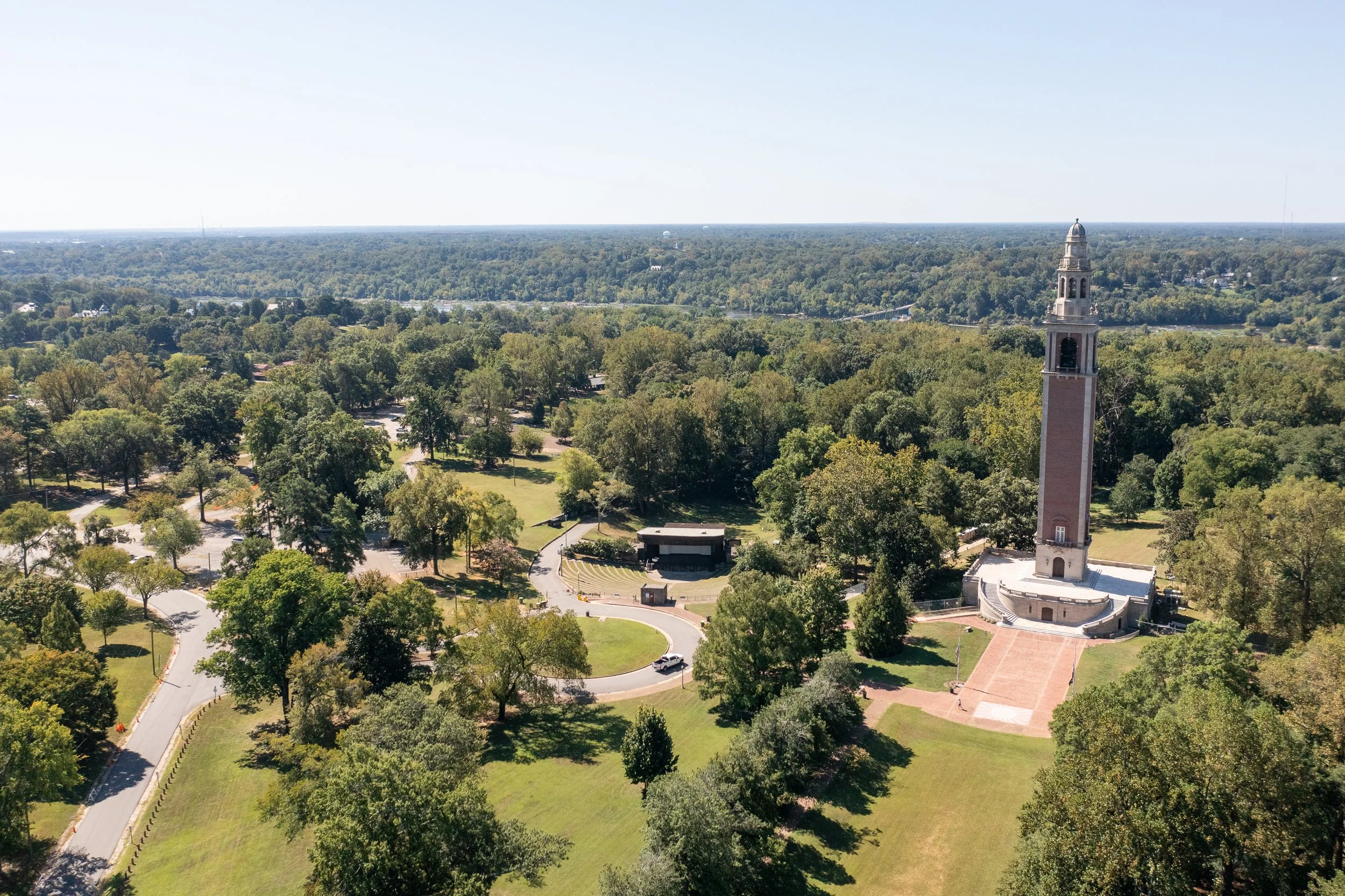 Averaging 618,000 visitors/month and often referred to as Richmond’s "Central Park," Byrd Park’s designed and natural areas include tennis courts and ballfields, hiking and biking paths, picnic areas, open spaces, naturalistic woodlands, and three man-made lakes.